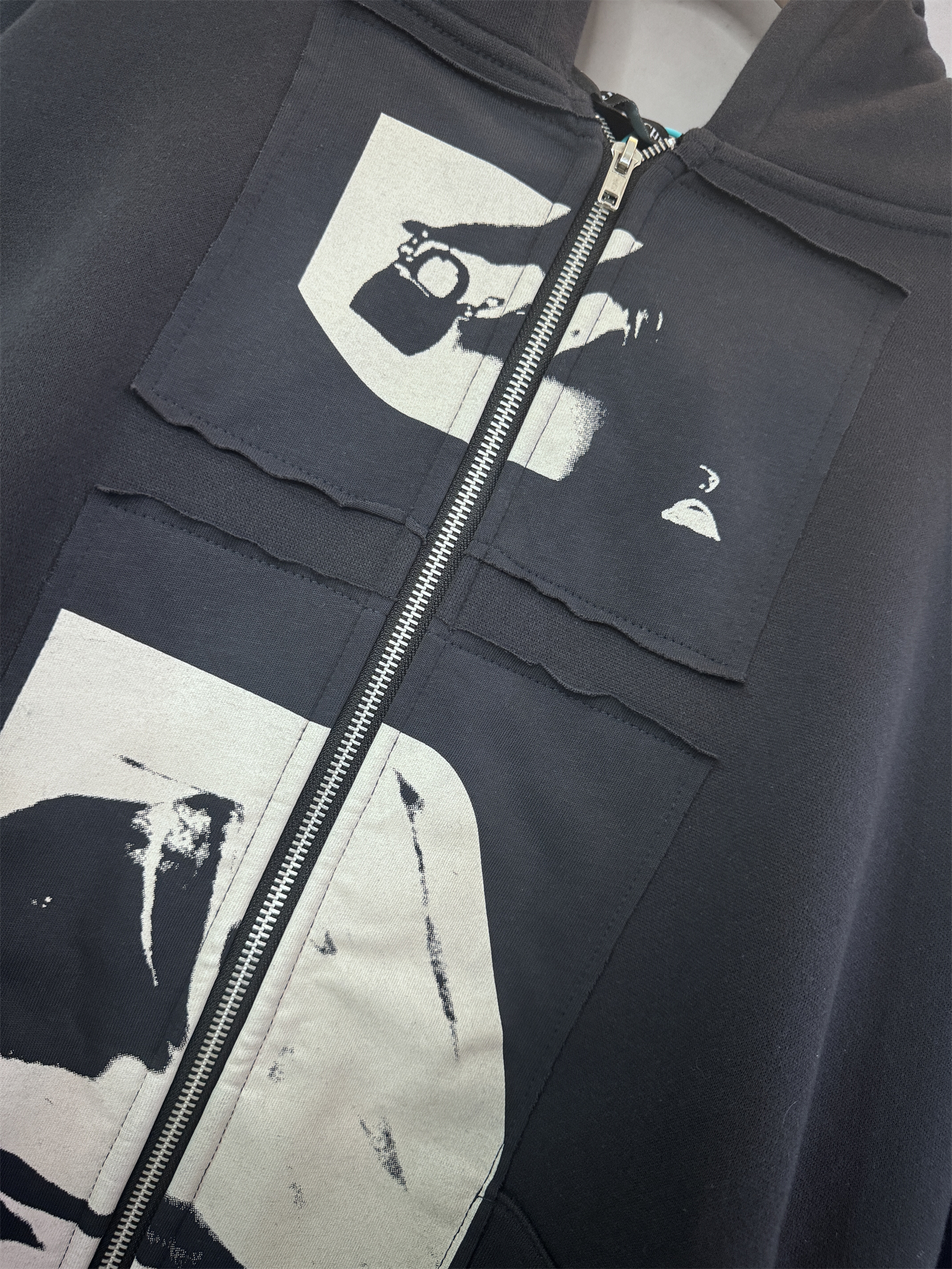 Vintage Aesthetic: Features a unique washed and vintage design with a melancholic Madonna illustration patch, creating a retro vibe.